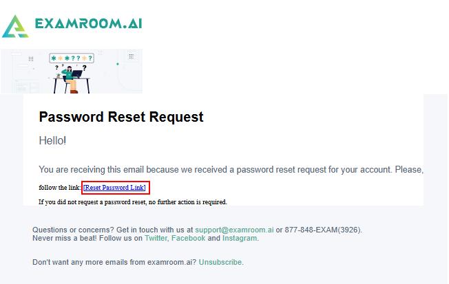 - After submitting the password change request. An email with a Reset Password Link is sent to the registered email address.