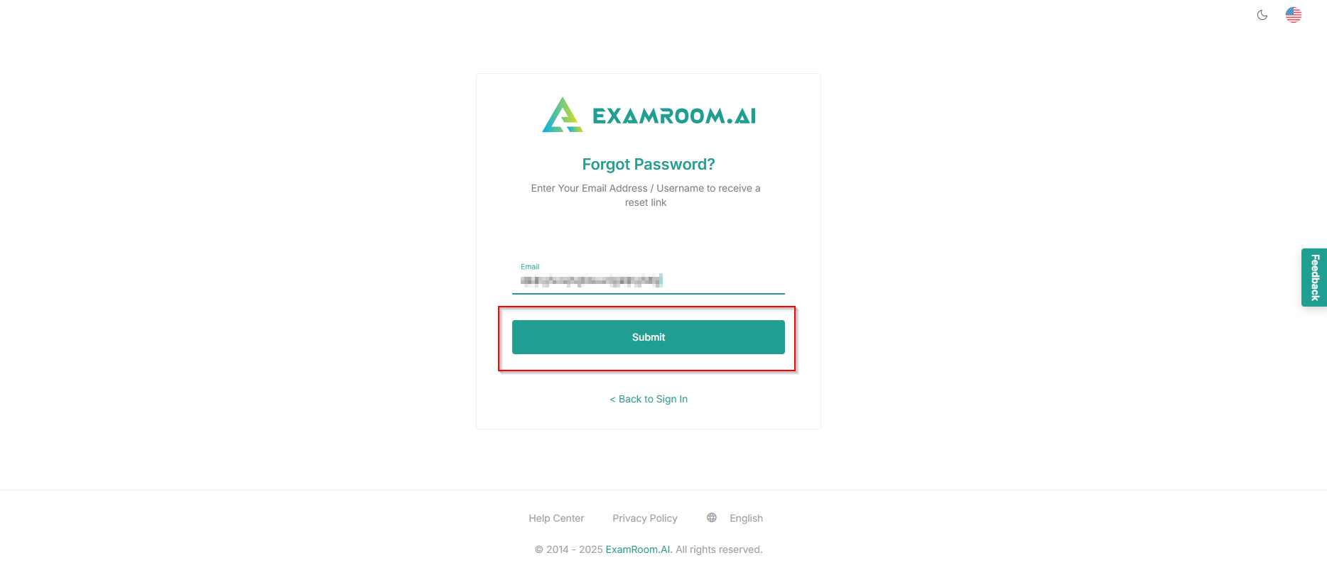 - In the Email field, enter your registered email address and click Submit. Click Back to Sign In to go back to the login page.