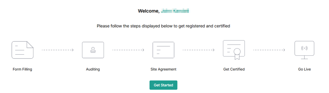 - Click Get Started to start the process of form filling in the onboarding dashboard to proceed.