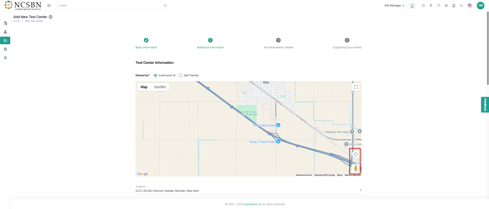 - In Additional Information, check owned by, verify the precise test center location, timezone, and add test center availability and other information to proceed to the next step.
