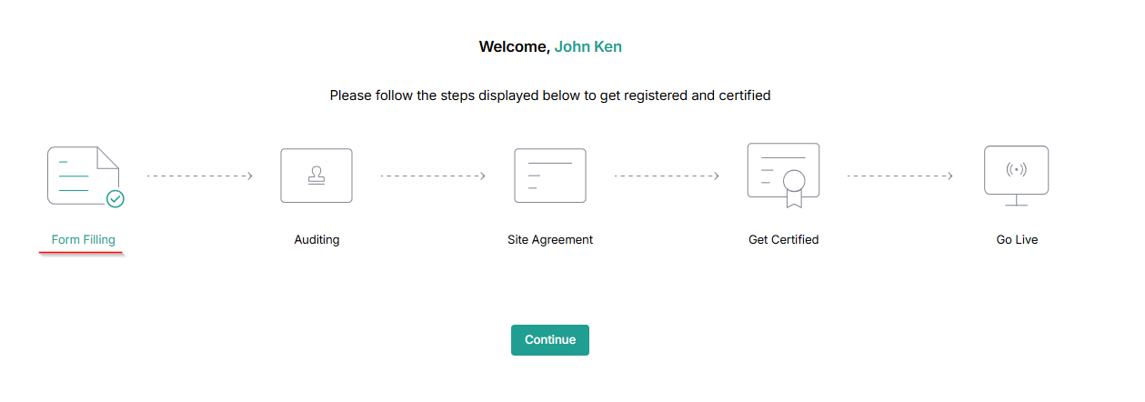 After signing up on the platform, complete the onboarding process for your test center certification. If you have multiple test centers, you can register them after completing registration with one test center. This process includes submitting the initial application, the audit process, the site agreement, getting certification, and going live.