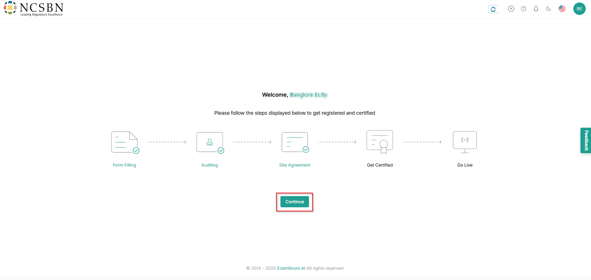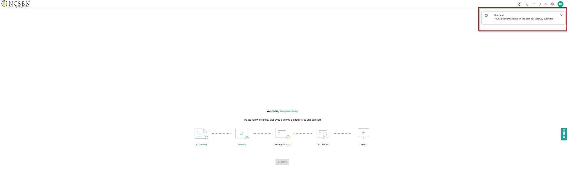 - Once approved, click Continue for certification.