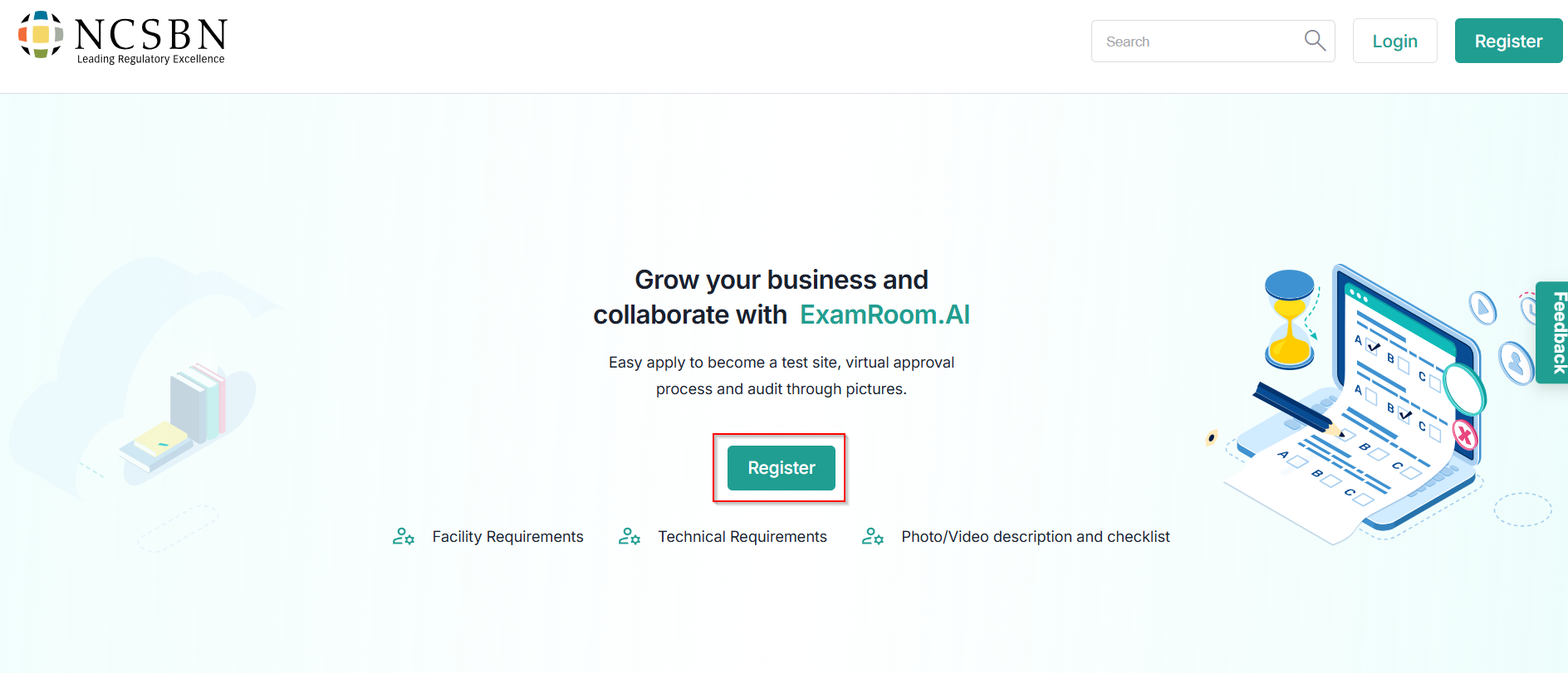 - Go to the TSM registration page using: https://testsitemanagementuat.examroom.ai/