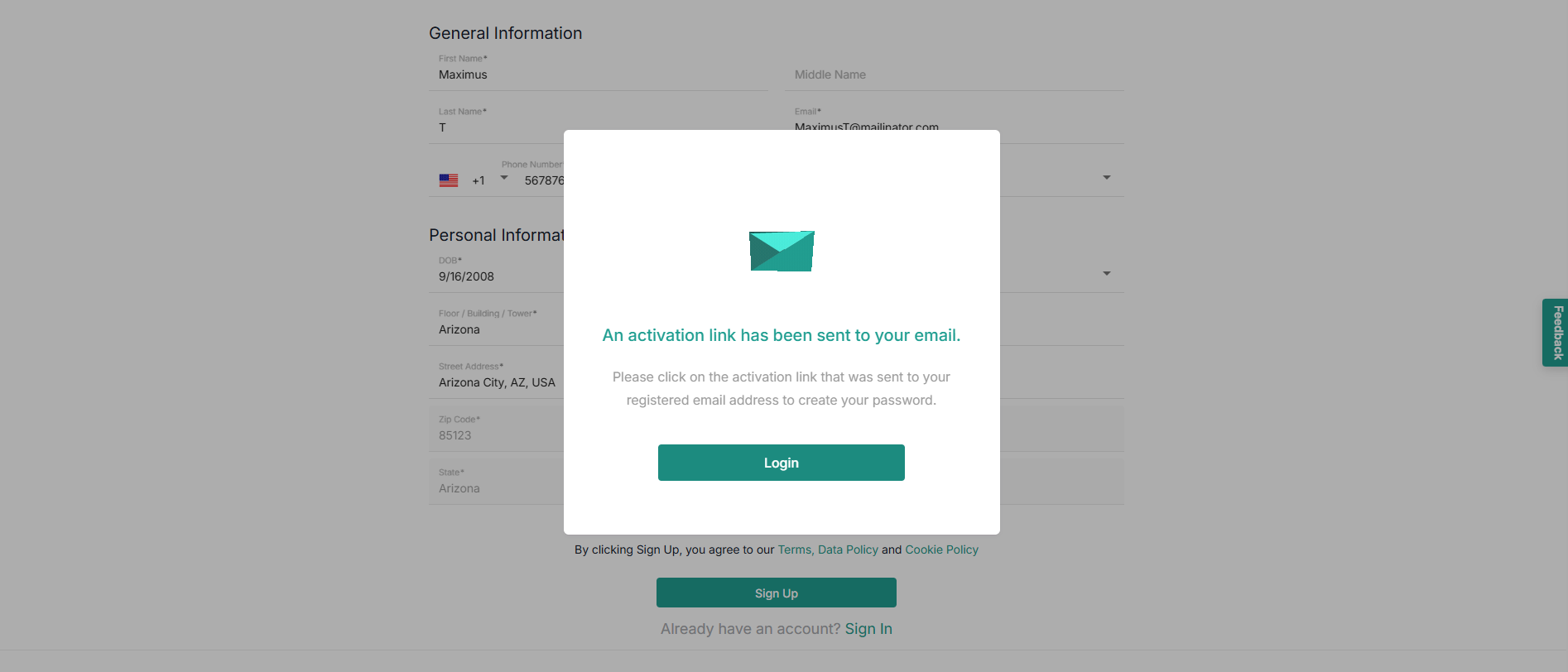 - Click Sign Up.