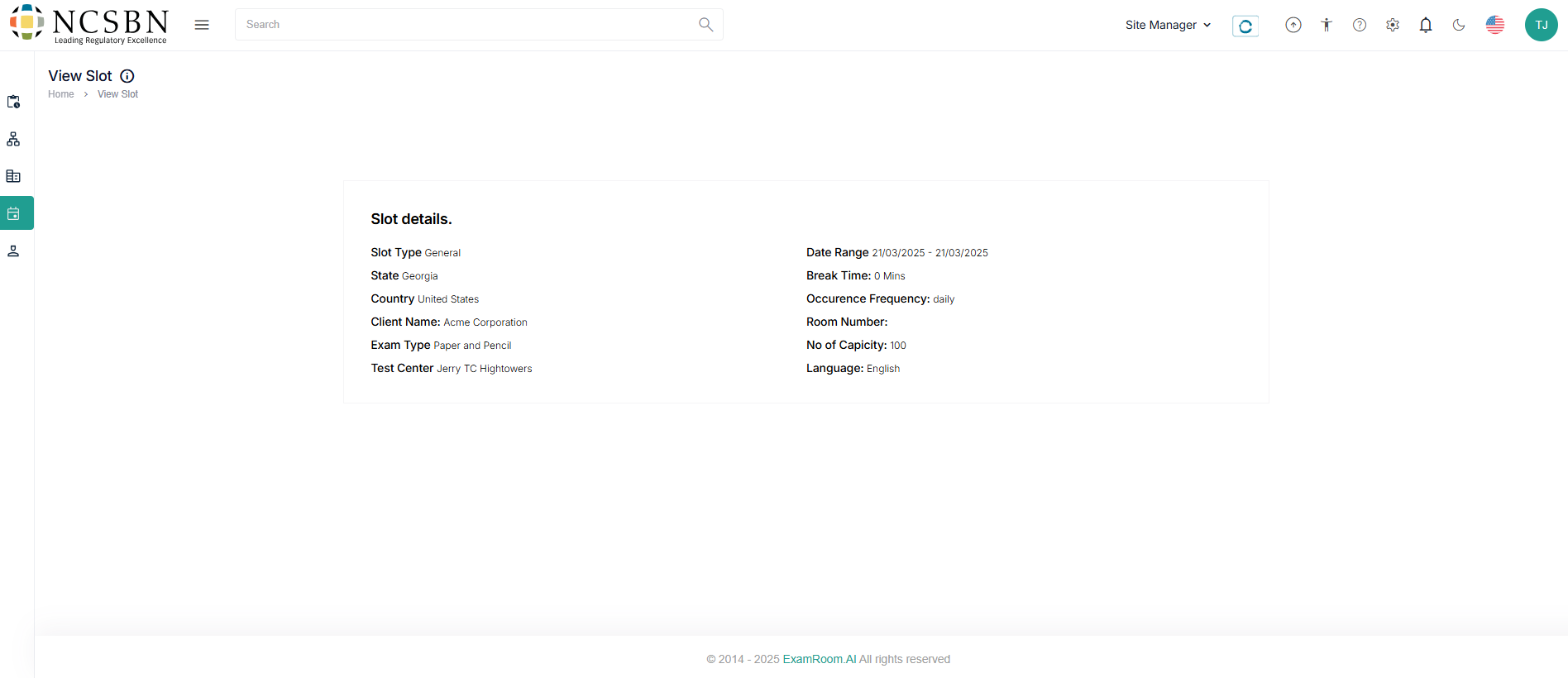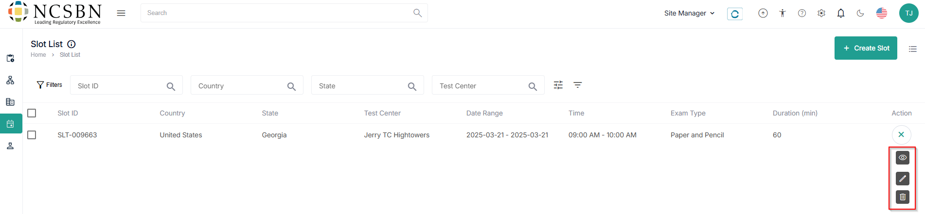 - Manage the slots using view, edit, and delete options under the Action field.