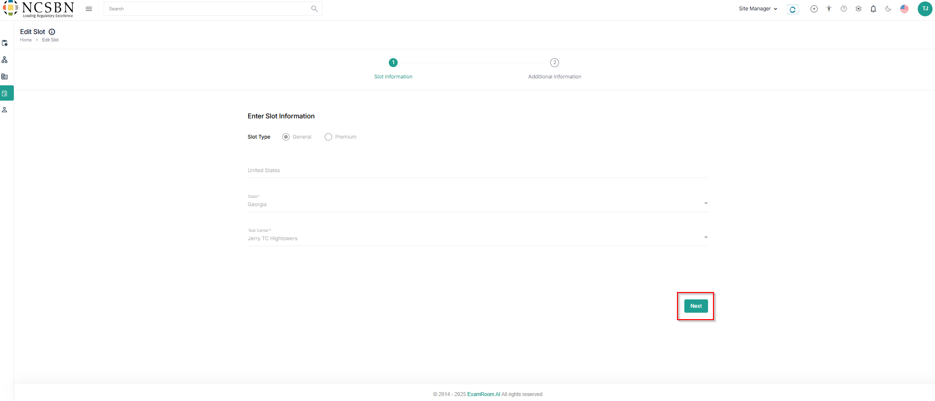 ) icon to edit or update the slot details and Next to proceed further.