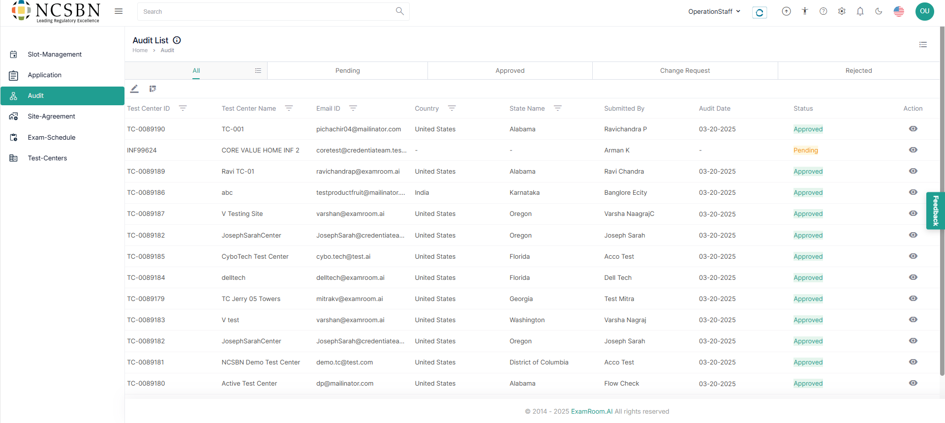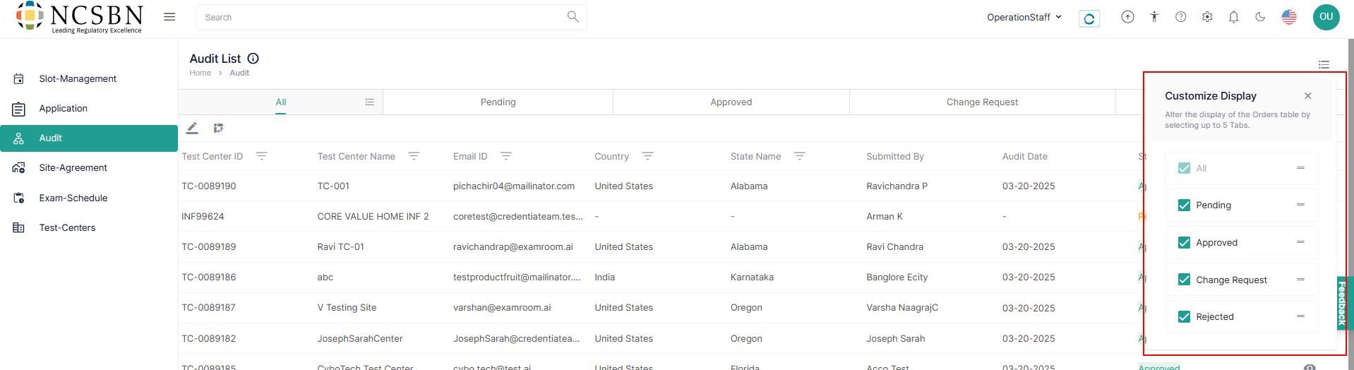 - In the Audit section, all the submitted audit lists are displayed in a tabular format with their key information.